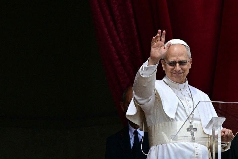 Pope Leo XIV delivers the Regina Caeli prayer from the main central loggia of St Peter’s basilica in The Vatican.